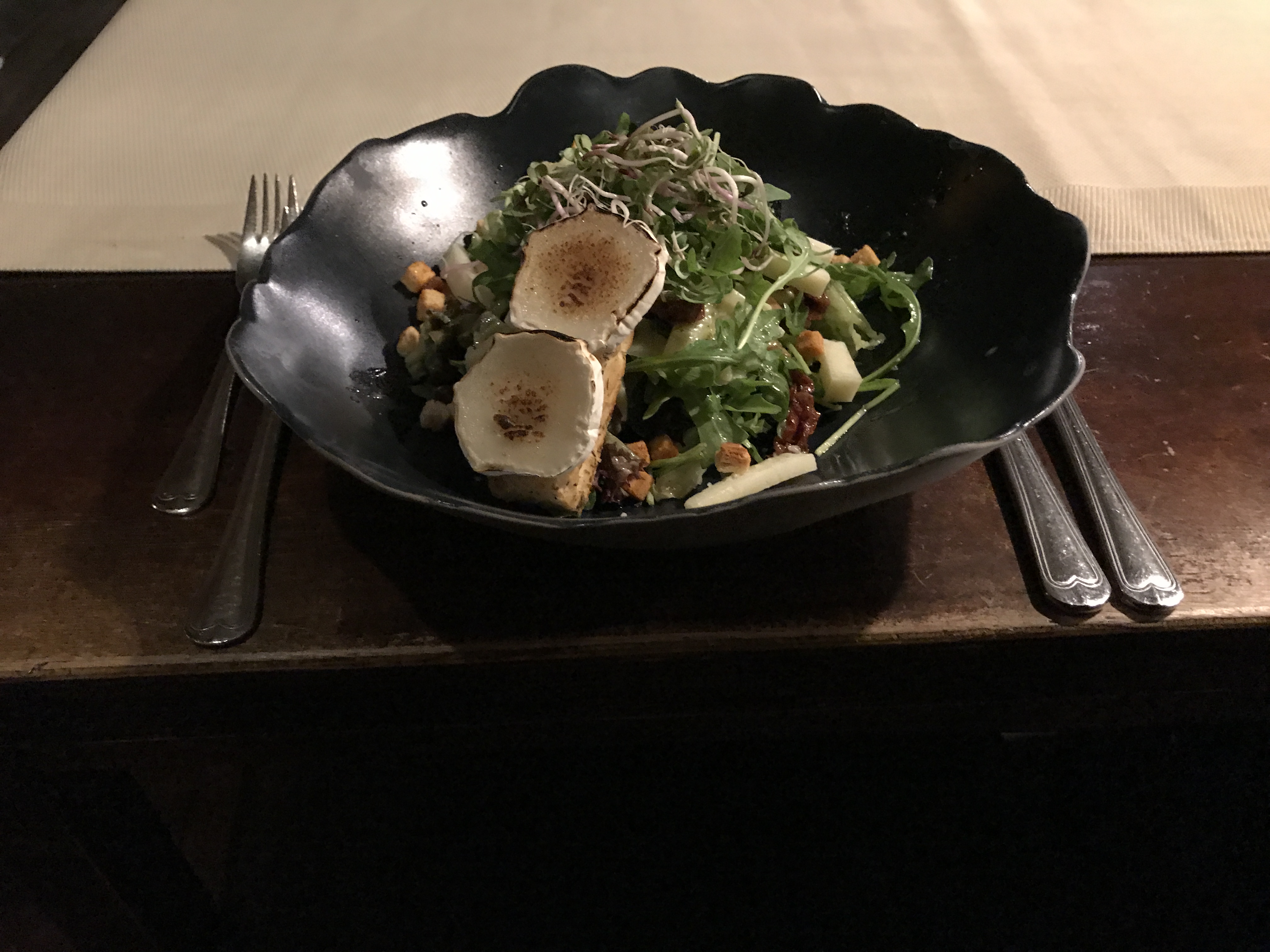 diverse soorten geitenkaas/ honingdressing/ walnoten/ salade.